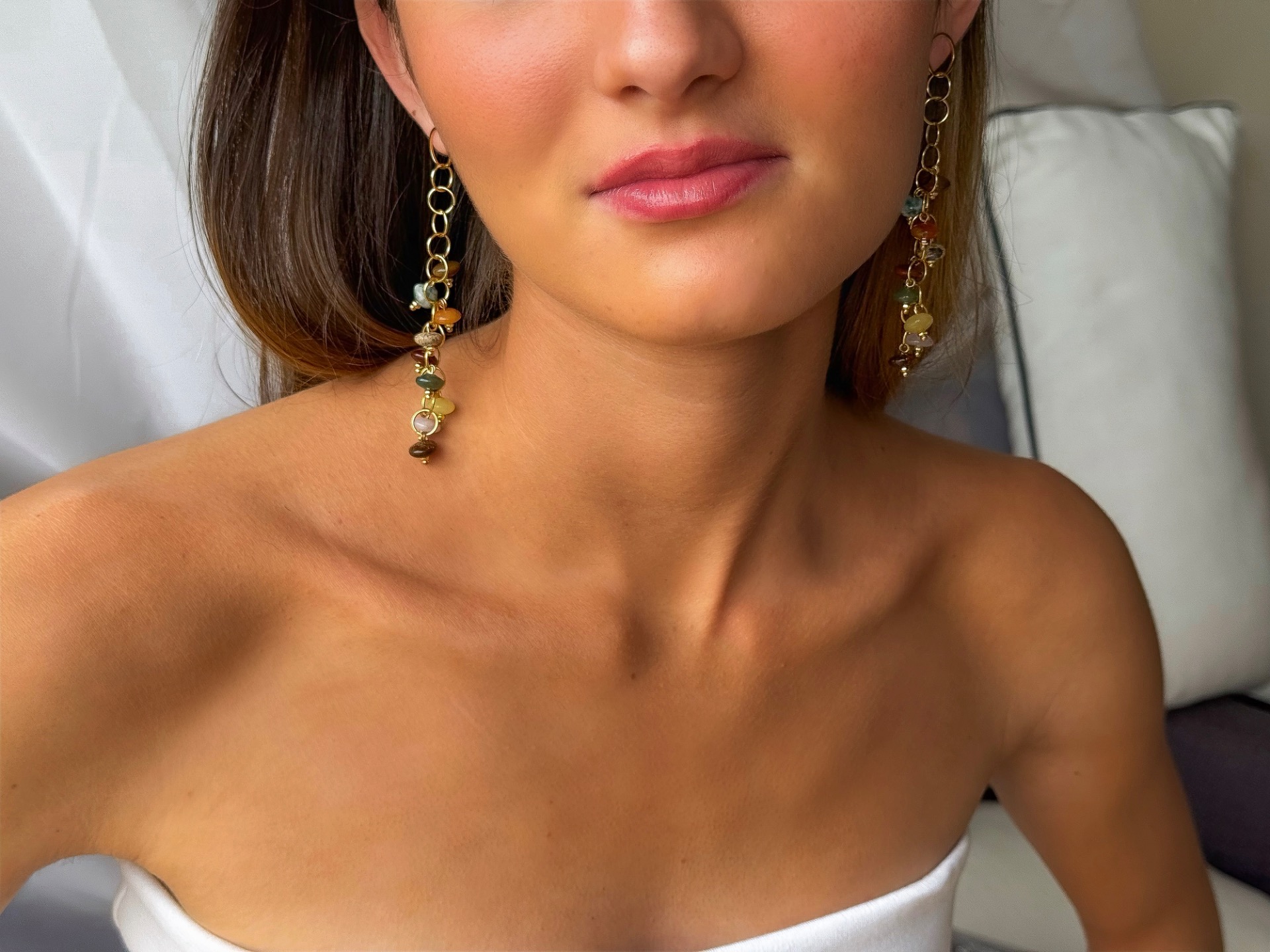 Pendiente con cadena chapada en oro 18k.